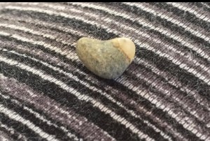 This heart stone really wanted to be seen/heard. I have a cut on my foot and needed some salt water to soak my foot in. As I filled my water bottle with ocean water, this heart found its way into the bottle with the water.
