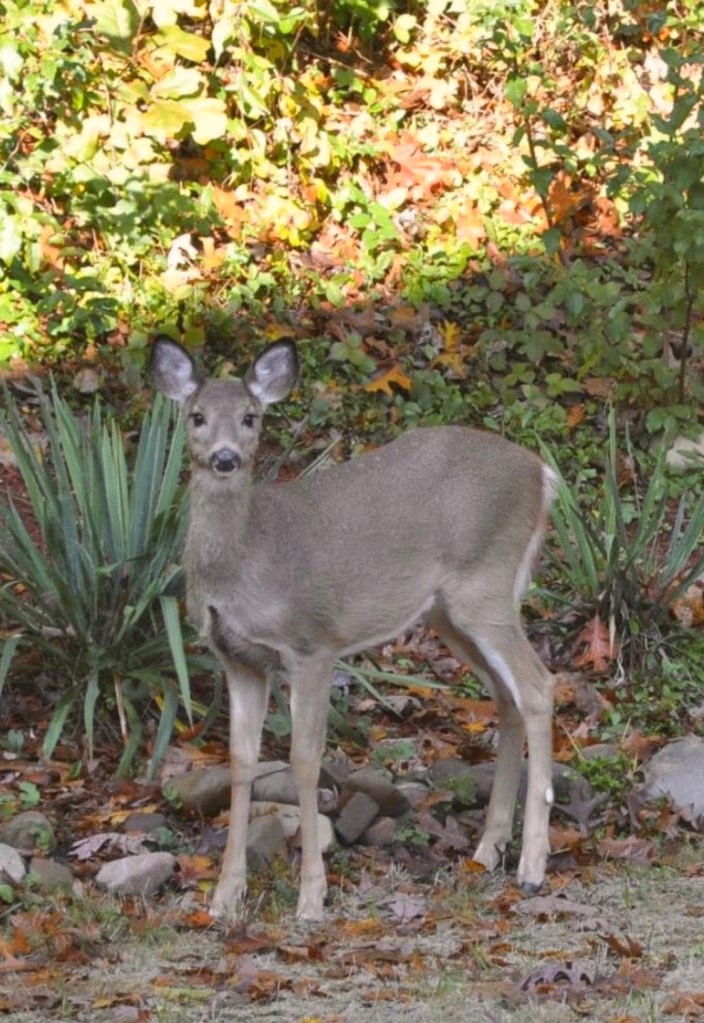 Feeling honored that they share my space. Or is it that I share their space? Soggy wetlands and paths yet to be forged. Their presence welcomed and apparent. My arrival, in the woods, as stealth as I can muster and still they notice me. Before I spy them. Stillness if only for their nostrils’ mist, their hooves sinking, snapping branches, crunching brown leaves.