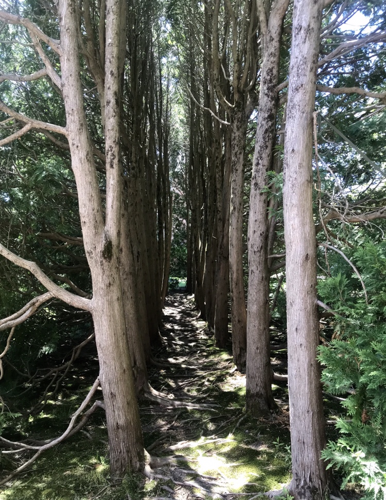 Mother, I am home. I remove my coat and hang it on the rack. At the base of this Hickory, soft green Cedar fronds, border the huge Hickory in a semi-circle – concealing this sacred world from outsiders. Surely a magical thing. I shine brightly here in this dimly lit ins-tree-tution. I shine brighter. My secret safe palace, holding me sacred. I play. Alone, at peace. At once. Secluded from the jagged edges of life and dreaded doom. Stuffing myself into it’s humid warmth. All is lost in the wind circling, swirling.